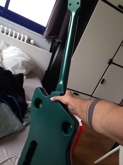 Les cavités micros sont faites(pas de photos) , collage de table fait. Demain on arase tout ca et direction le neck pocket.