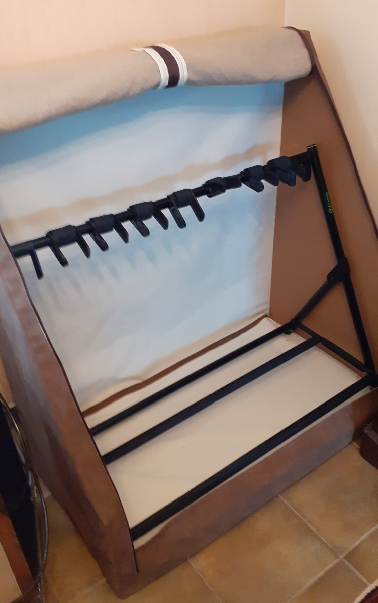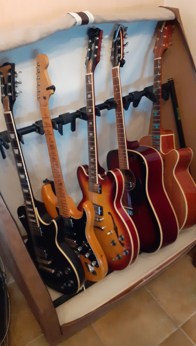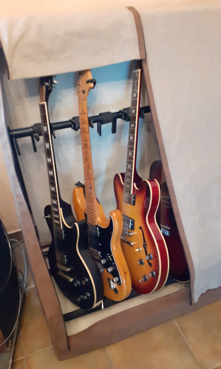Je voulais une housse pour mon support de guitares a la maison. Il arrive que j’en délaisse une quelques temps, et quand je veux la jouer.