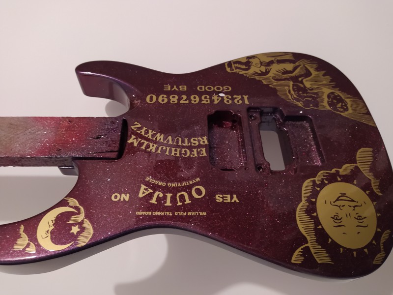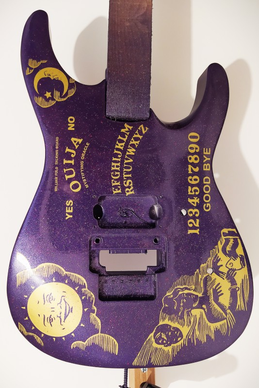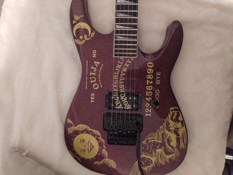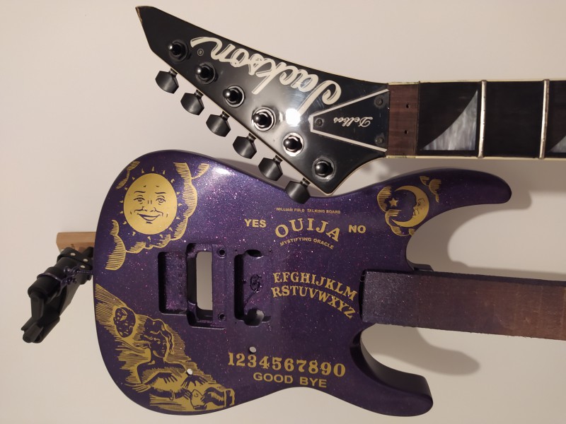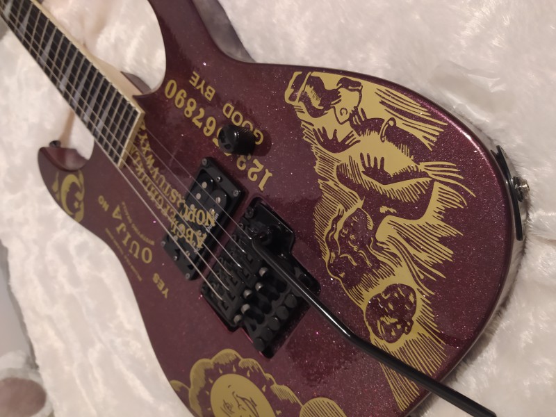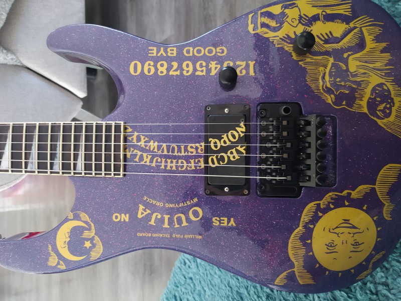 Deux Jackson dk2 japonaise repeinte façon ouija de kirk Hammett.