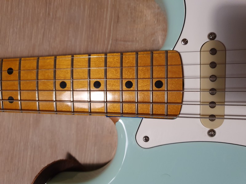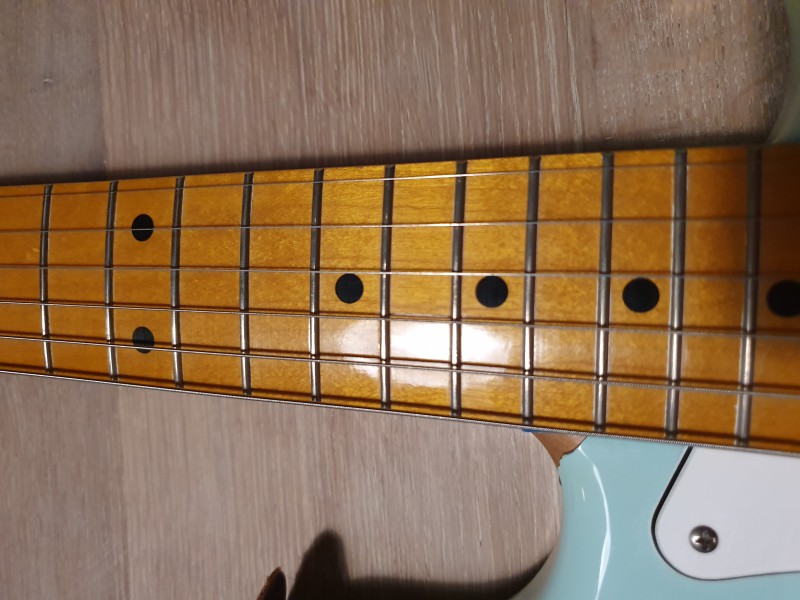 Alors concernant le centrage des cordes j'ai un peu forcé sur le manche, en temps normal ça ressemble à ça: