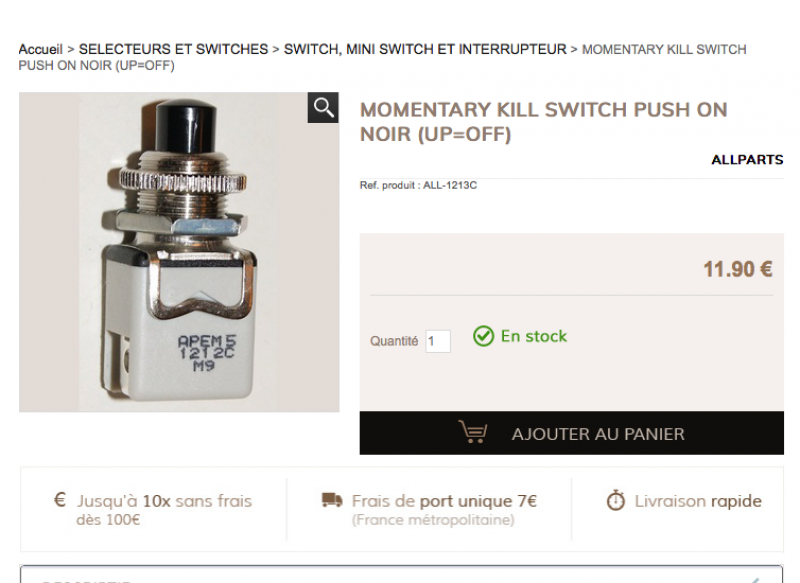 Mon problème est que lorsque je soude les 2 câbles du kill sur le fil noir et le fil blanc de ma prise jack (comme on voit dans tous les schéma de montage d'un killstwich), eh bien j'ai l'effet inversé... c'est à dire que je dois appuyé sur le bouton pour que ma guitare délivre un signal !