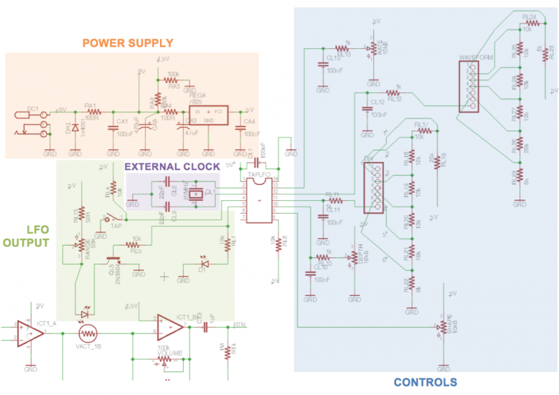 En effet, comme le dit Oldamp, le 5V permet d'alimenter le LFO, et les différent réglages qui sont juste des ponts diviseurs de tension entre 5V et la masse.