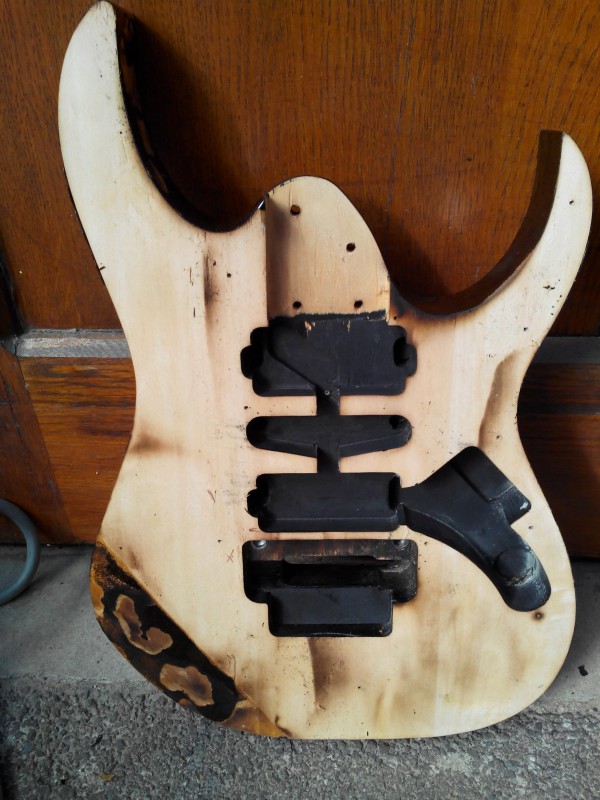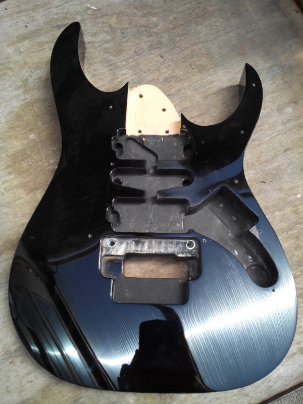 Salut à tous, voici l'évolution d'un projet d'une modification d'UV70 pour la faire à la sauce Van Halen. Le manche a été réalisé par CG Lutherie (Cf le topic qui a fait couler tant d'encre sur ce forum) et je m'occupe du corps en bon amateur.