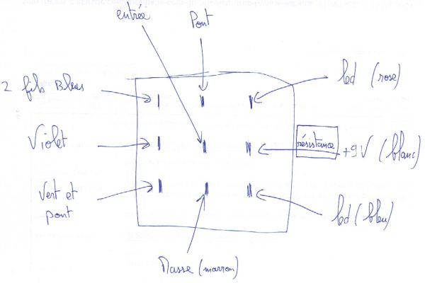 Facile et aisé !! On utilise la loi d'Ohm (U=RI) pour déterminer la résistance chutrice en fonctions de la chute de tension dont on a besoin. ( ici 9v -> 2V = 7V )