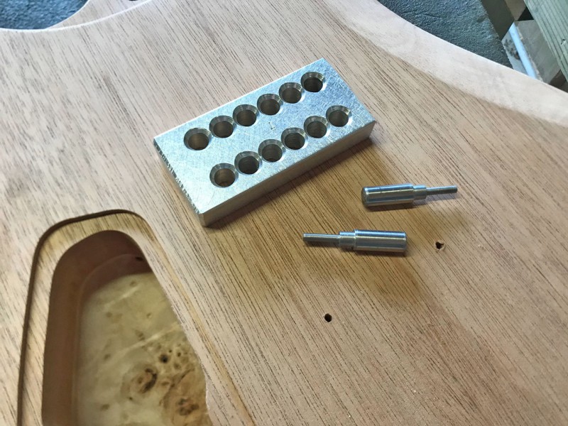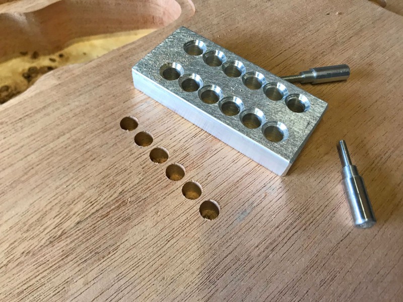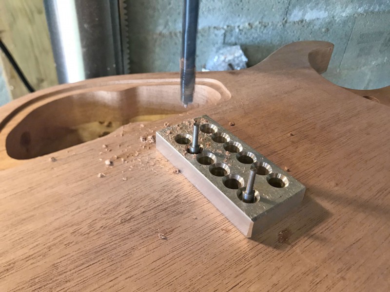 Et j'ai enfin pu utiliser ma nouvelle perceuse à colonne avec mon gabarit de perçage pour les ferrules...