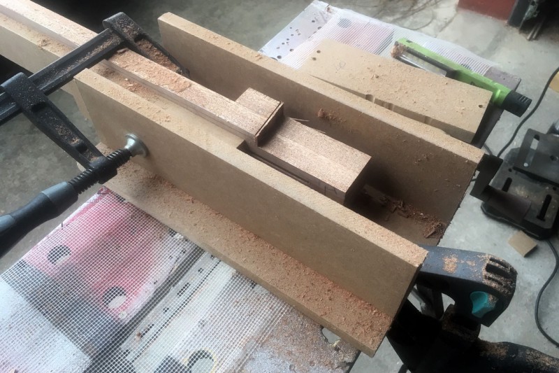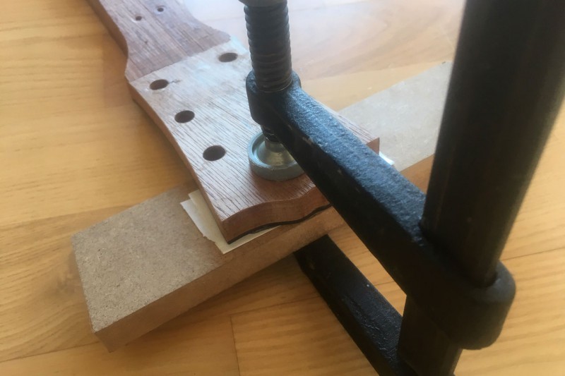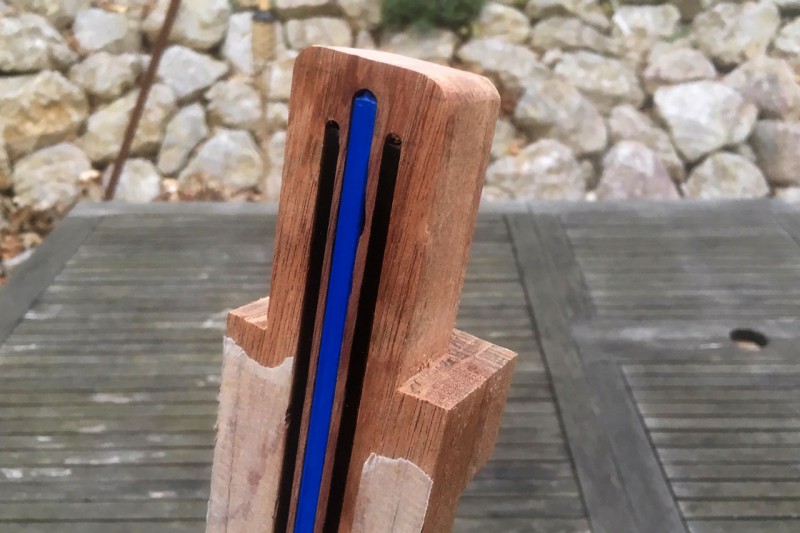 Collage à l'epoxy mélangé avec de la poudre d'ébène.