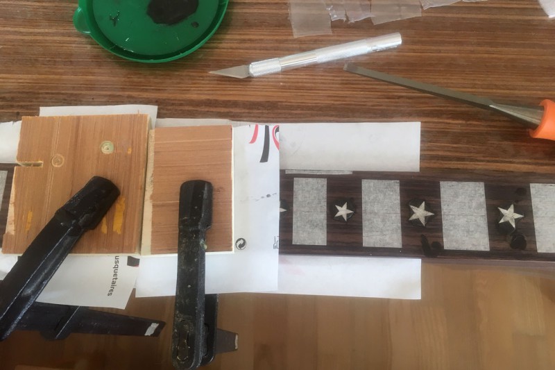 Le support "Stewmac" est tip top. (je mets Stewmac entre guillemets car c'est un GW que j'ai acheté sur ebay. Mais c'est la même chose.