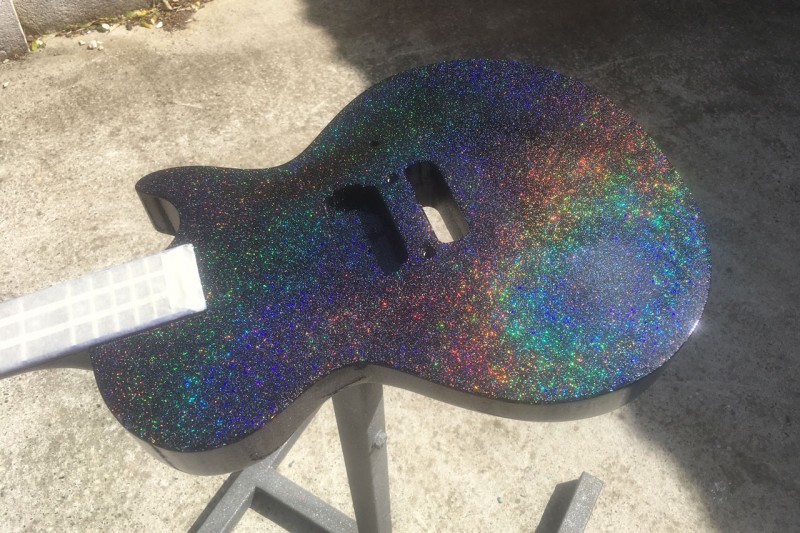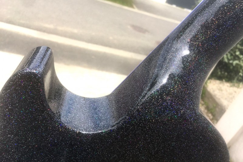 Ensuite ponçage des fameuses paillettes et on attaque le vernis. 3 bonnes couches aujourd'hui.