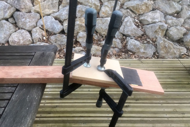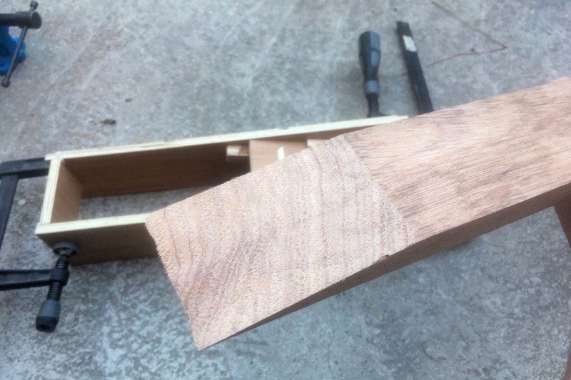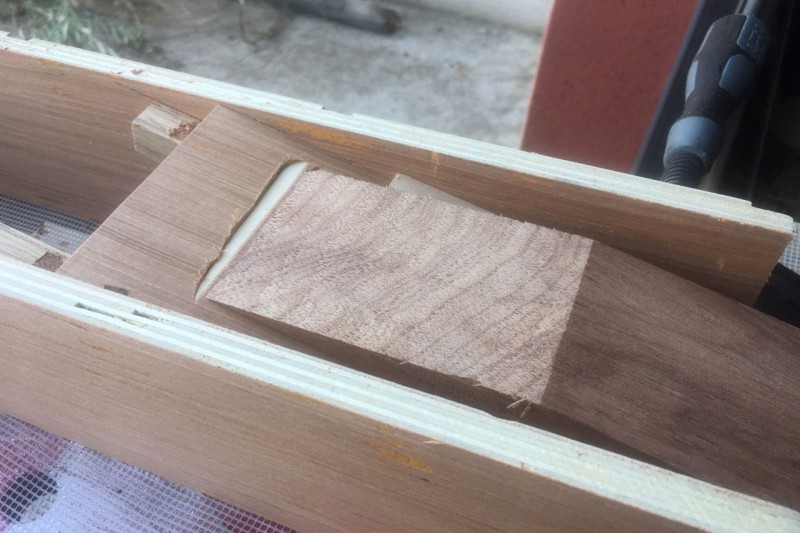 J'ai découpé le manche avec un angle de 13° pour la tête.
