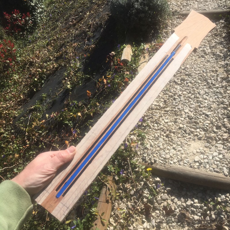 Sinon ça a de la gueule ton manche. Je pense que les deux renforts en carbone sont un peu superflu si tu n’envisages pas de tirant de l’espace, mais ça ne peut pas faire de mal.