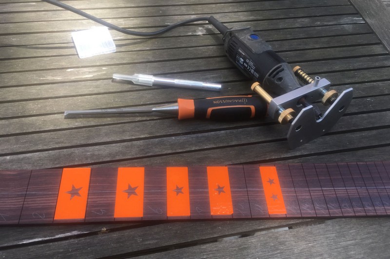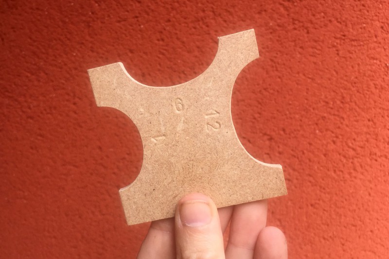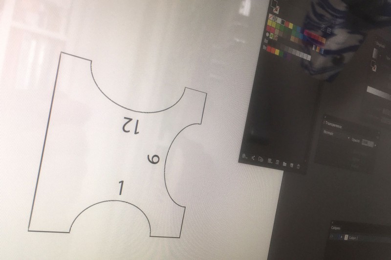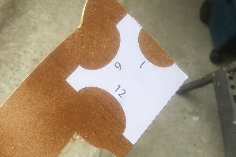 Le gabarit est imprimé et collé sur un morceau de mdf
