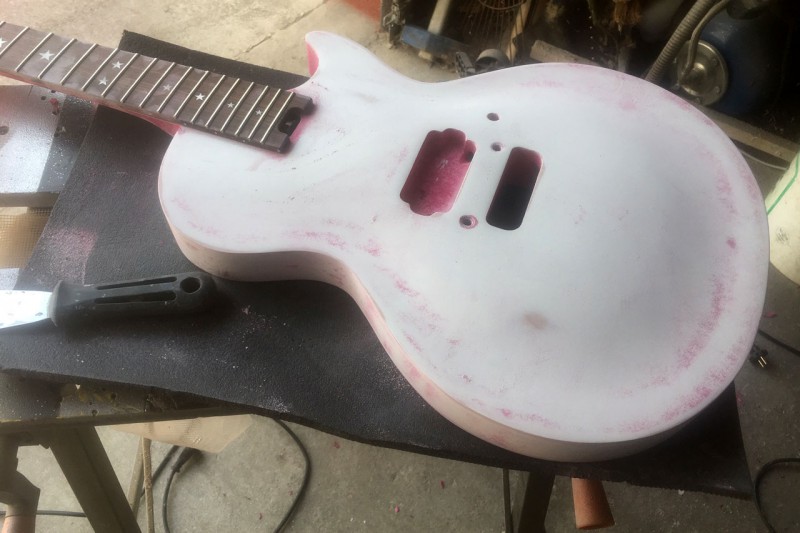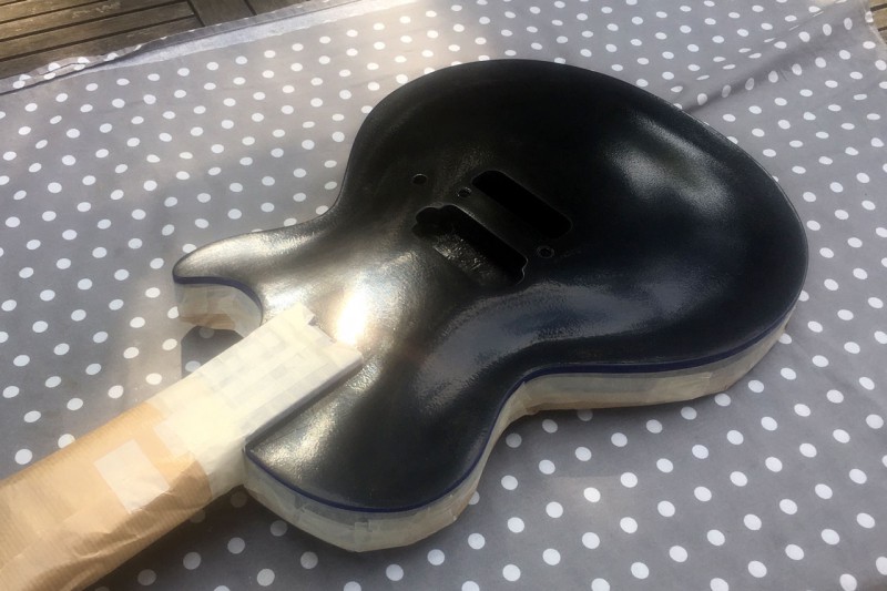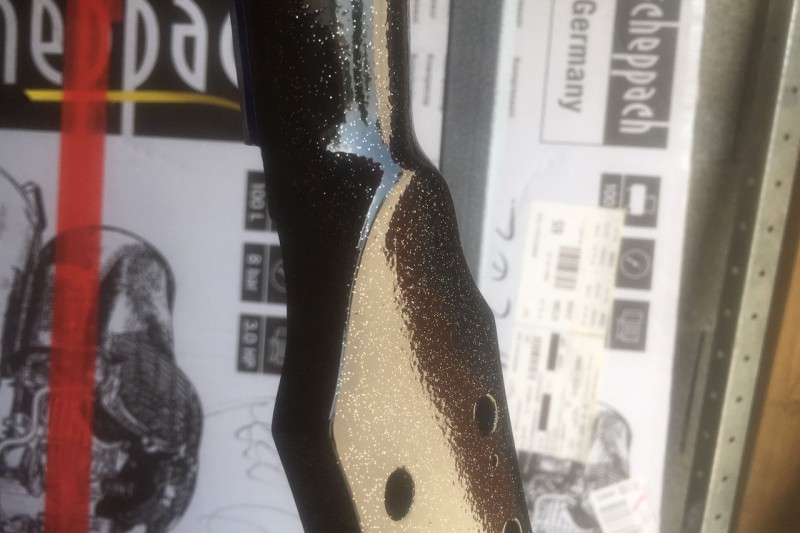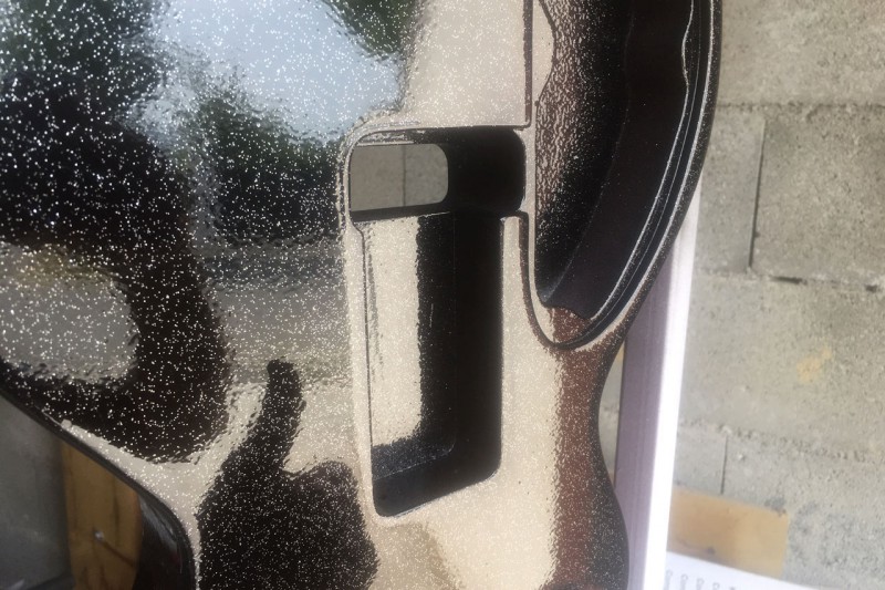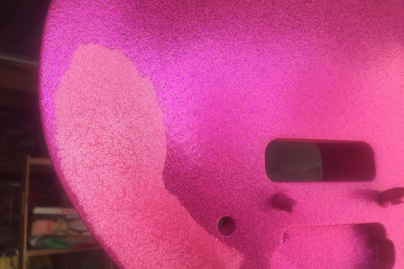 Pour la table je vais utiliser une technique différente. Je ne vais pas projeter les paillettes au pistolet avec du liant mais les projeter à sec dans une couche de verni fraîchement posée. Çà permet de charger méchant en paillettes jusqu'à ne plus voir la couleur qui se trouve en dessous.