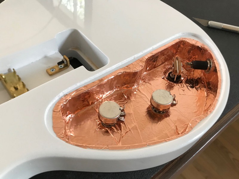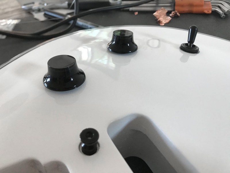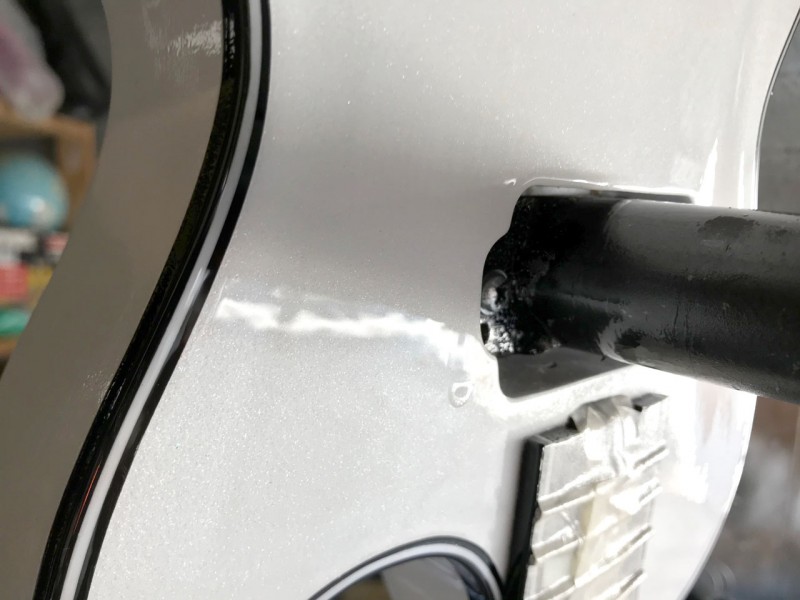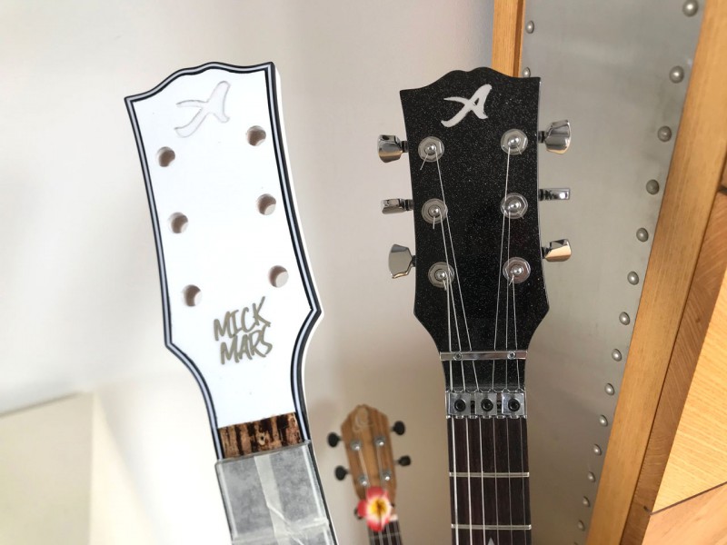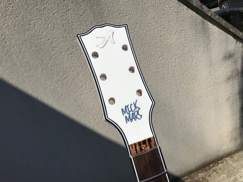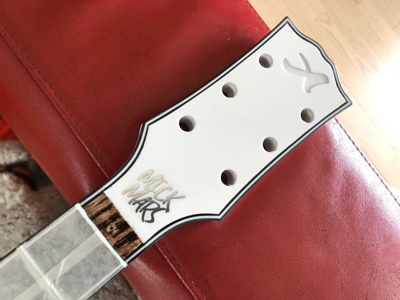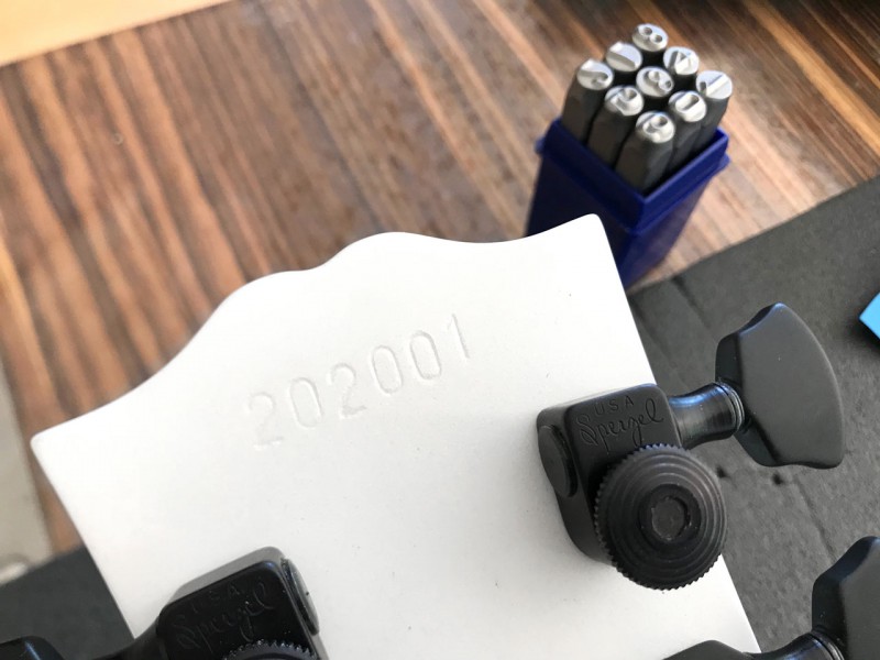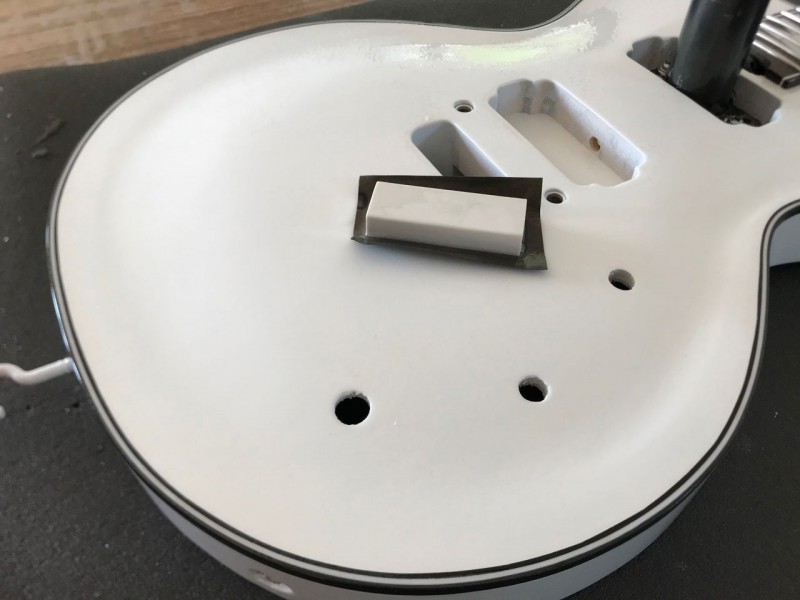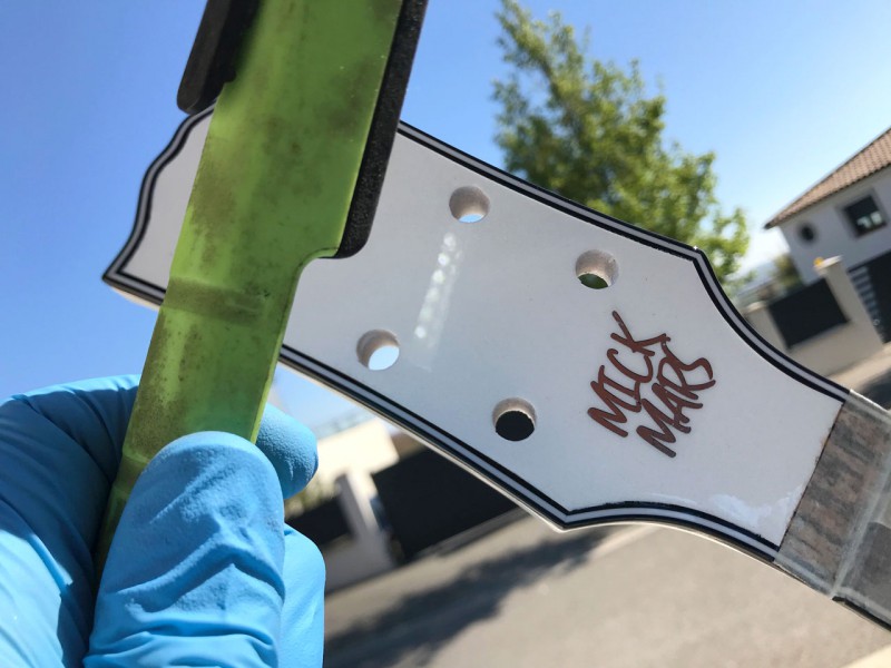 Le petit logo en nacre est collé à la glue dans son emplacement.