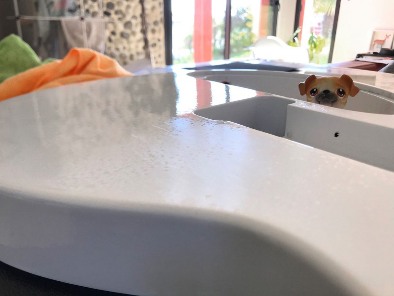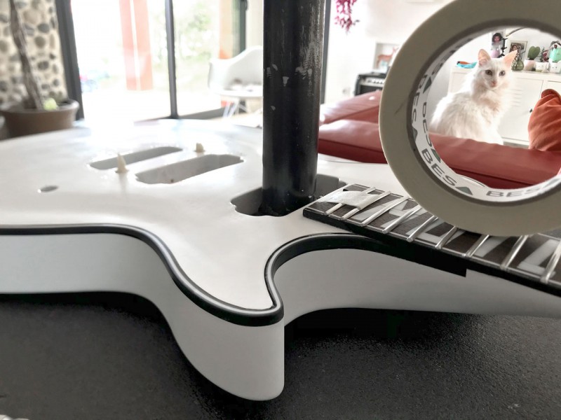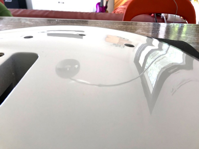 Pour info, si (ou plutôt quand...) vous faites une coulure de vernis, n'essayez surtout pas de rattraper le coup de suite. Vous allez aggraver le cas. Laisser sécher à cœur puis ponçage à sec avec du ruban de masquage autour de la coulure comme sur mon post d'avant. Ça marche à tous les coups.