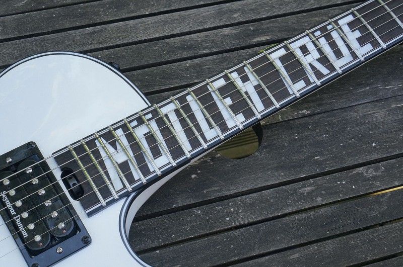 Une question, as-tu collé la partie noire au bout du trussrod (partie qui sert à le régler) ? Il est livré détaché et ne tient pas vraiment, j'ai peur que ça vibre.
