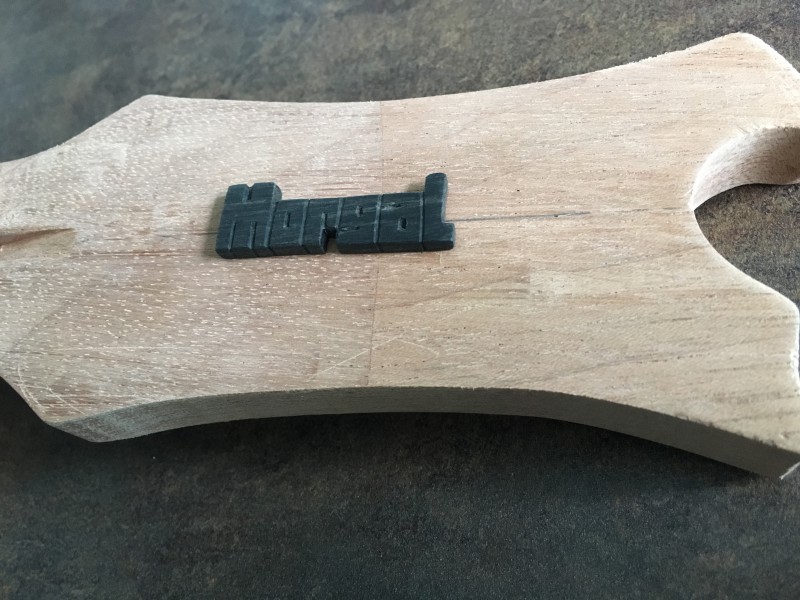 Lorsque je ferai l'incrustation j'éviderai l'emplacement sur la tête de manche de manière à ce que le logo dépasse légèrement en relief.