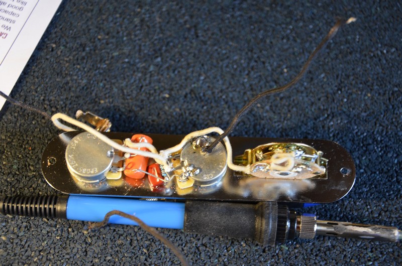j ai procédé comme pour des seymour , relier rouge et blanc DANS LE VIDE SCOTCH US , la tresse a + micro et noir masse sur un des potard son .