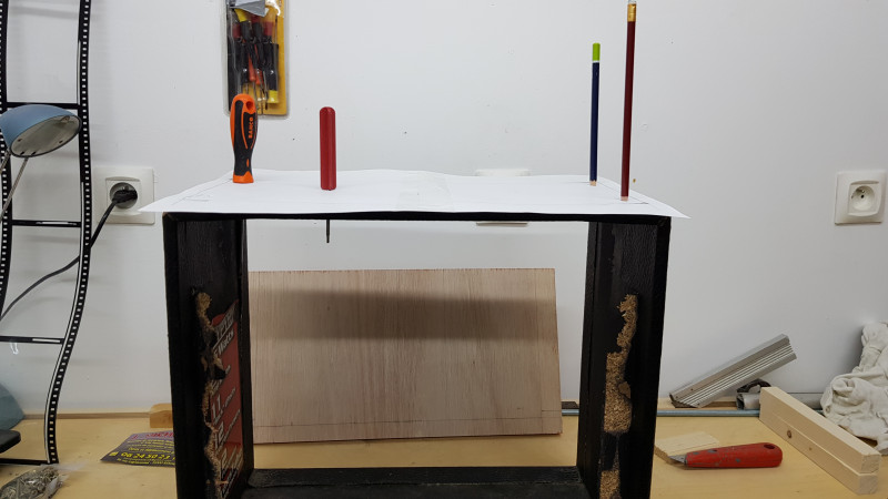 On se rend compte que le panneau accueillant le HP est en carton et le bois ne servirai même pas a allumer le feu. Donc pas le choix, ciseau et marteau sont de sortie et on y va de bon coeur.