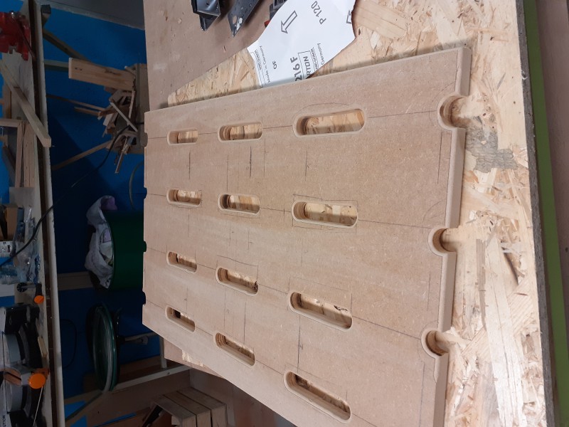 Usinage du plateau en lui-même. La j'ai merdé car je n'ai pas prévu les passages d'alimentation pour les pédales du haut. Le plateau sera posé sur des tasseaux à l'intérieur.