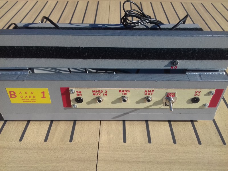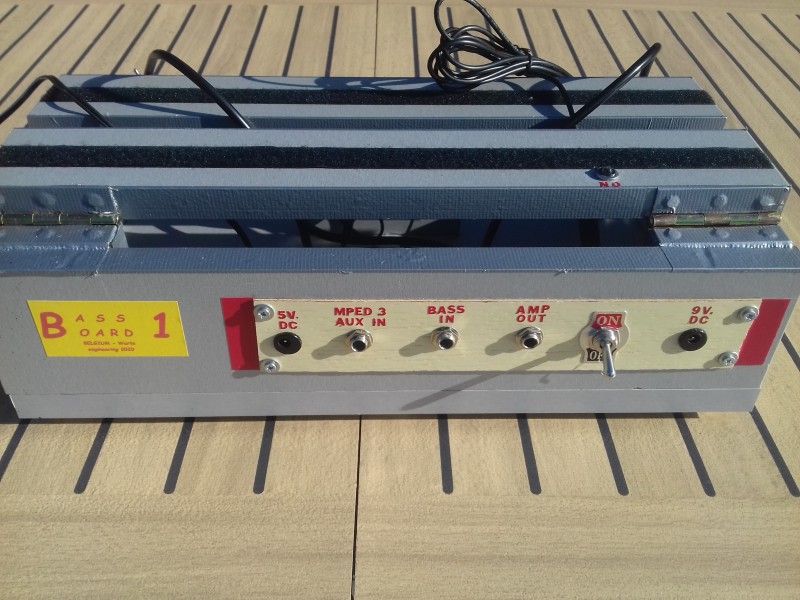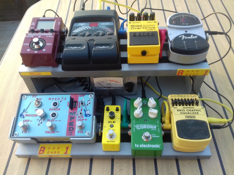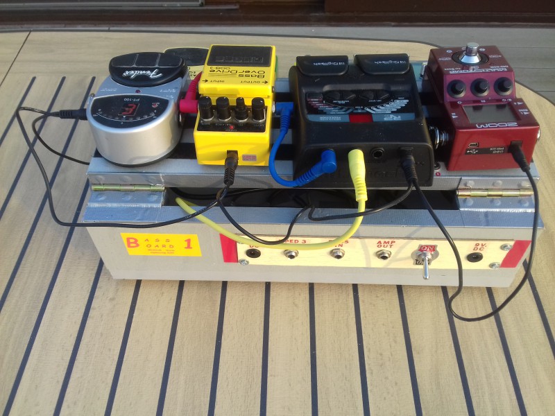 Je vous présente mon pedalboard maison, que j'ai appelé "Bass Board 1" puisqu'il m'aide à jouer de la Basse.