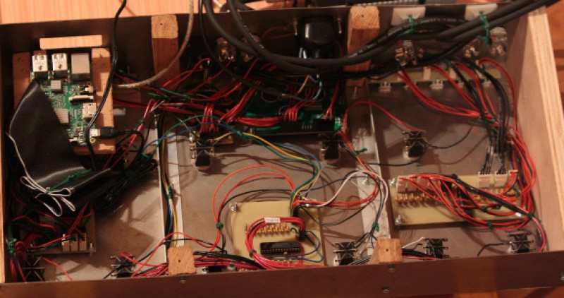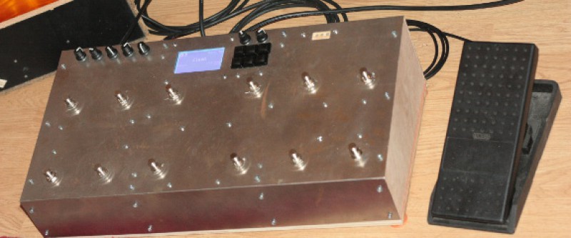 J’ai commencé il y a plusieurs mois et j’ai à présent une machine qui fonctionne et qui est tout à fait utilisable. J’ai mis en ligne une page décrivant le pédalier plus en détails et indiquant où j’en suis, quels sont les problèmes que je rencontre, etc. Il y a maintenant des plans et des instructions de montage relativement détaillées s’il y en a qui veulent se lancer dans l’aventure. Le gros du travail restant pour cette première version réside dans la partie logicielle : interface d’utilisation à finir, plein d’idées d’effets et de fonctionnalités…
