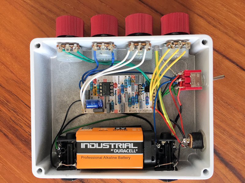 J'ai utilisé un 4pdt pour le On/Off, ça me permet de mettre l'alim de la pile dessus et donc de pouvoir laisser brancher le In en permanence sans vider la pile