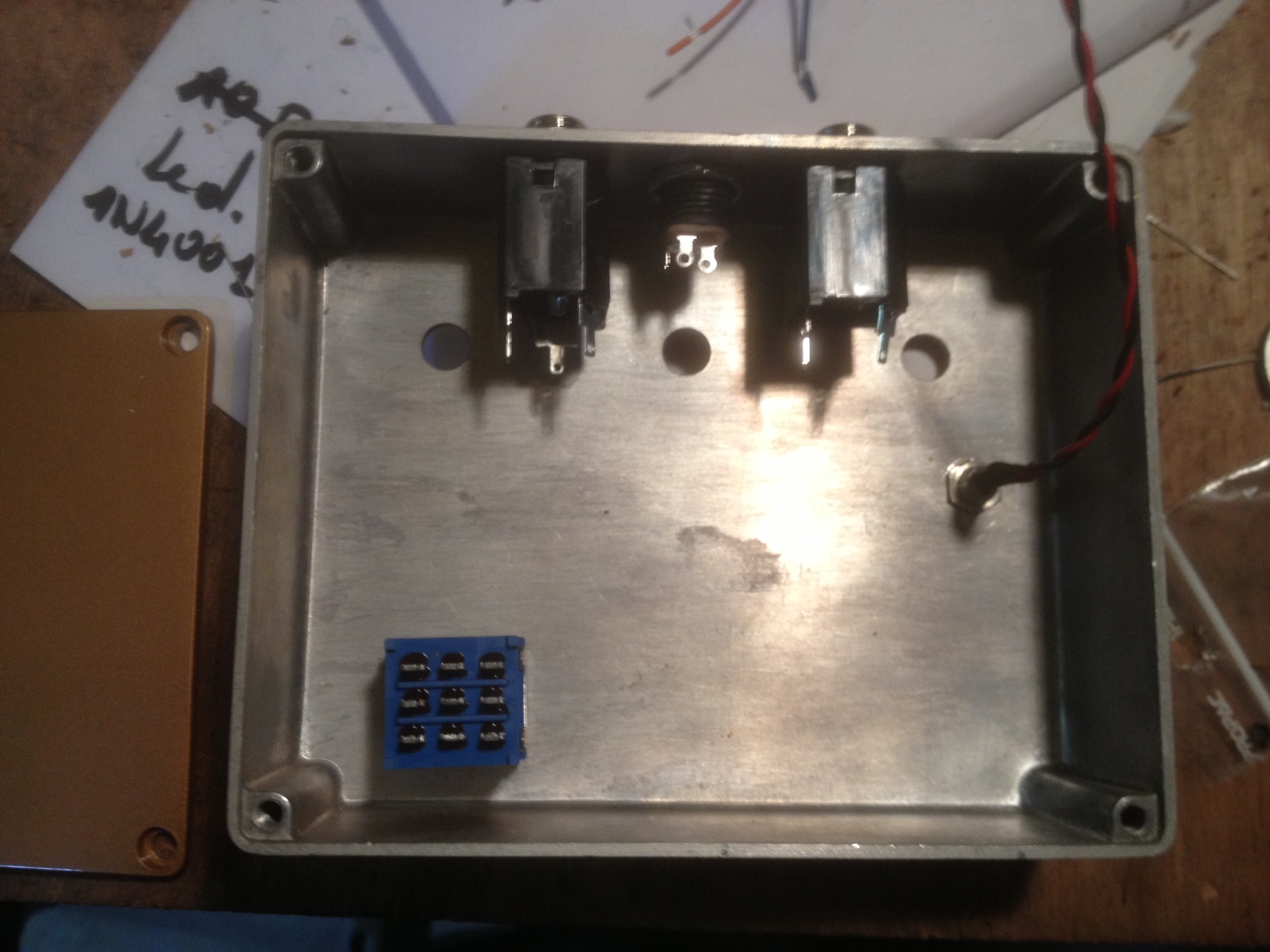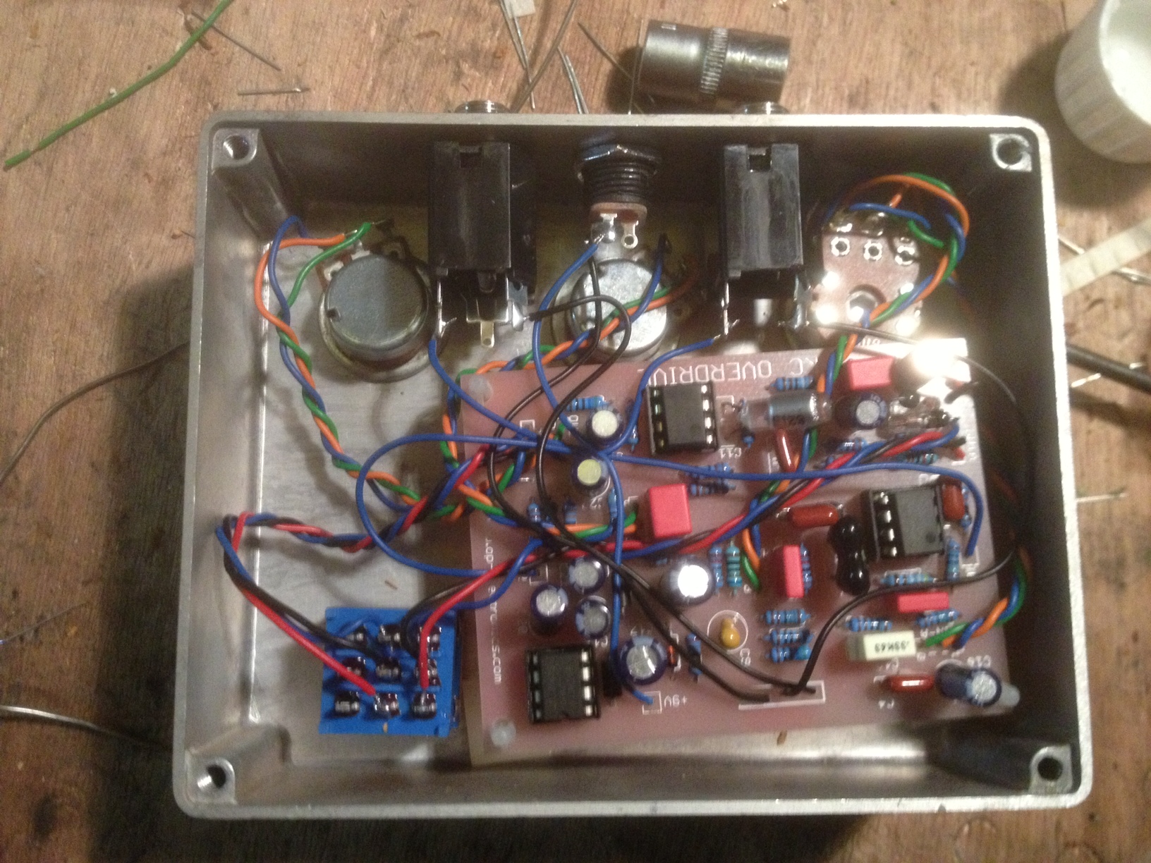 J'ai modifié le schéma de OP-electronic pour la remettre "copie conforme" du circuit original, mais finalement, j'ai tout de même remplacé une résistance pour avoir un poil plus de gain...