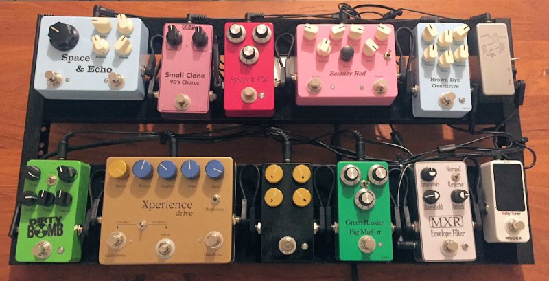 Avec cette pédale je vais du crunch léger à la grosse saturation, je passe sans pb du heavy avec le gain boost et le baby pink placé avant le drive. Placé après c'est un super boost de volume très transparent, parfait pour sortir du mix.