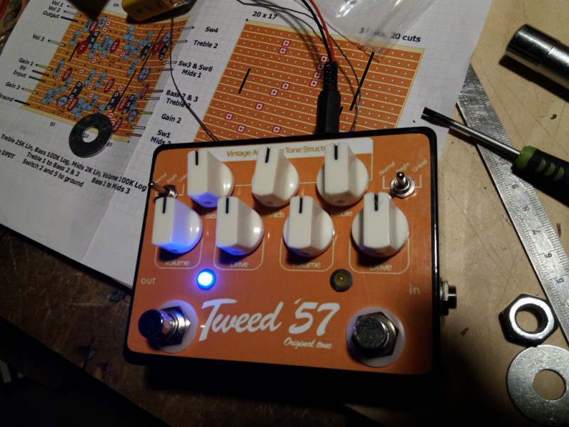 Je viens de regarder sur le circuit de la ROG Azabache, qui est une "Tweed57-like" un peu dans l'esprit, et en effet, pour celle-ci, il est préconisé ~6V sur le premier JFET puis ~5V sur les suivants... Je vais tenter ça ce soir (en même temps que je ferais la photo! )
