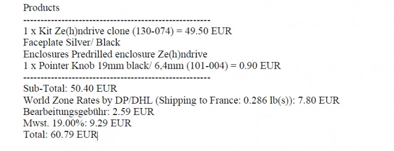 Justement, à combien revient une pédale via PedalPCB ? Tu en commande plusieurs d'un coup et tu commandes toutes sortes de composants par paquet de 100 ou commande vraiment au compte goutte ?