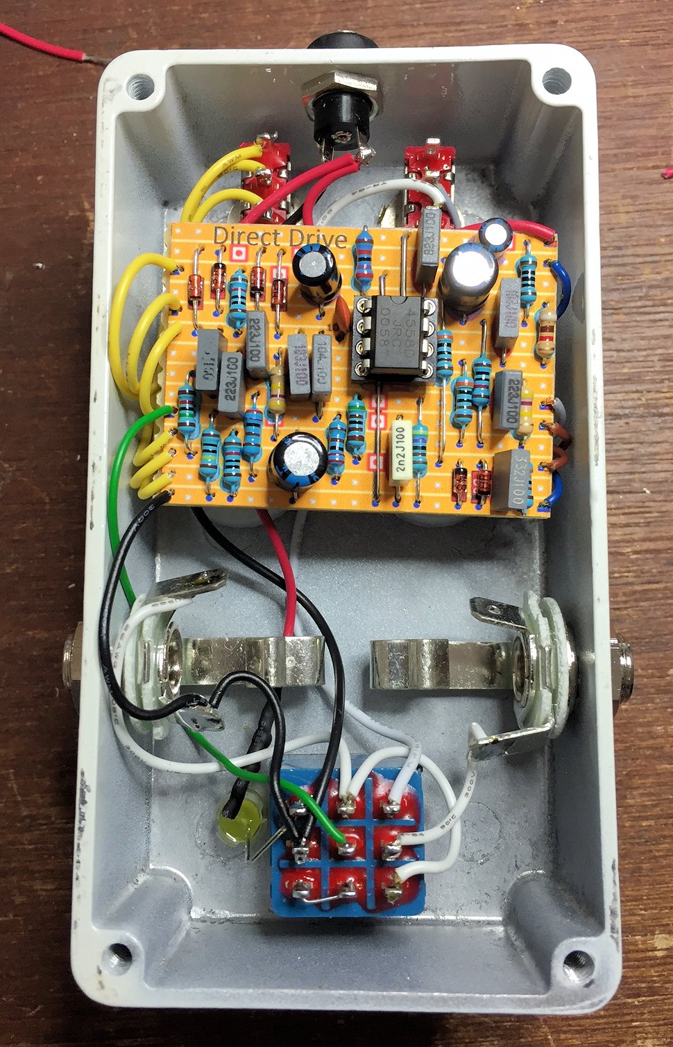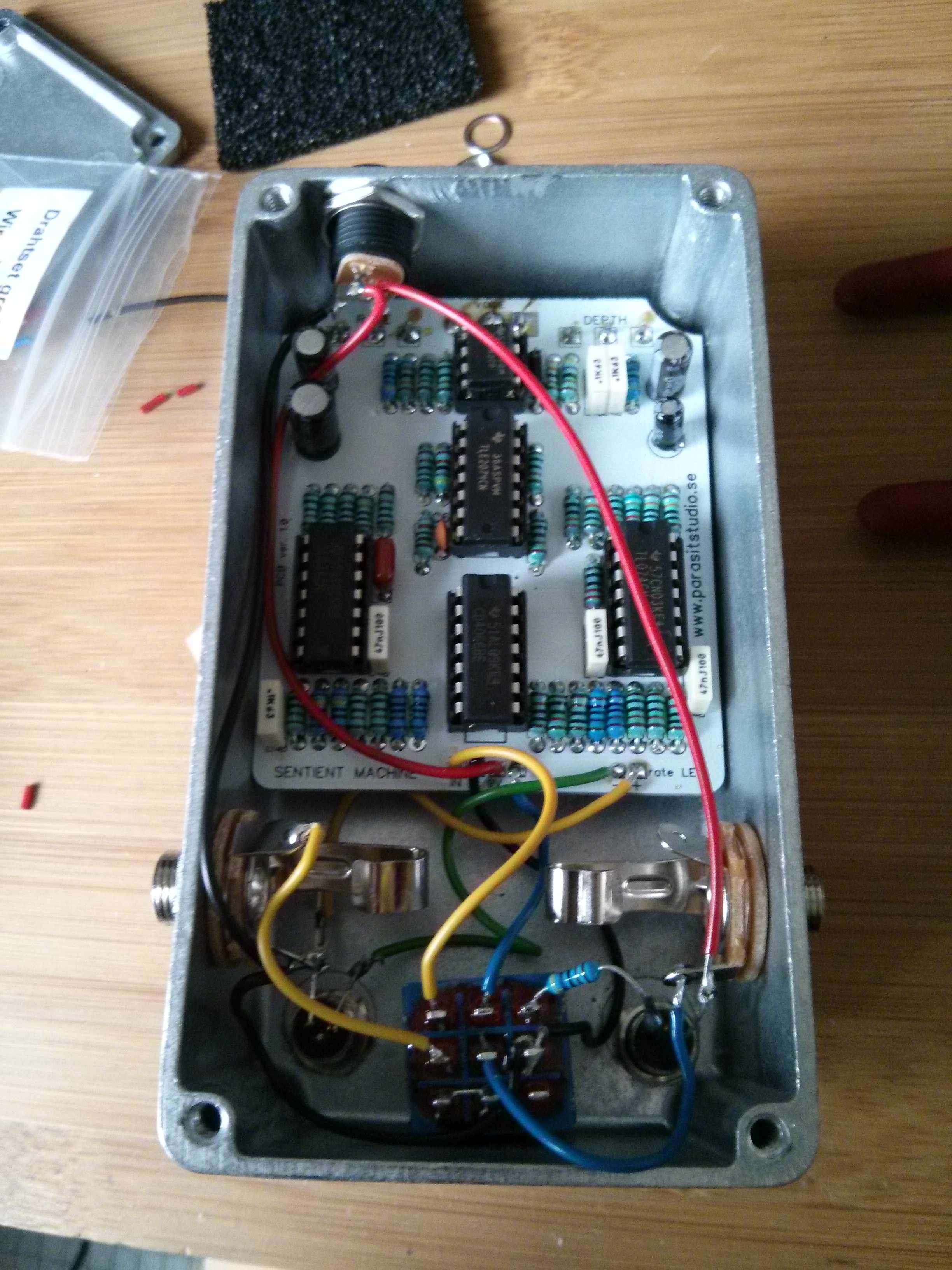 Si, si!! Mais la cyano est venue "vernir" la bague intérieure du jack, rompant la continuité entre la masse du jack mâle et la masse du jack femelle... Le truc à la con, quoi... Donc la masse rentrait même pas dans la pédale... Après, moi, je met systématiquement un fil entre les jacks...