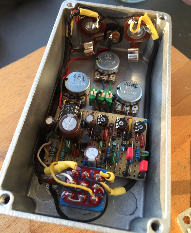 Une Shin's Music Dumbloid Overdrive Special, avec deux modes de clipping ajoutés, Silicium (1S1588 ) et Germanium (1N60P). Un peu spaghetti, pour le coup, là...
