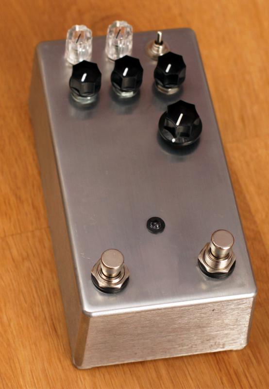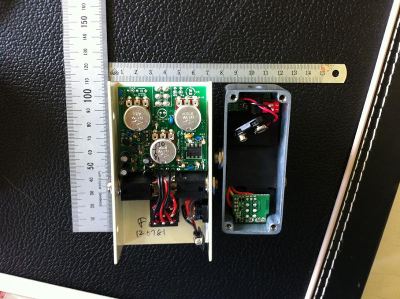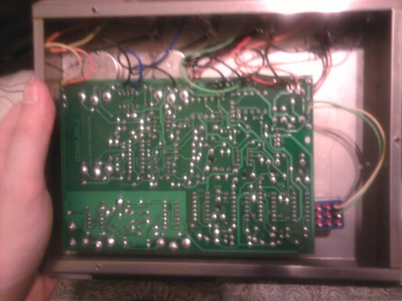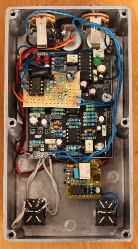 Le câblage n'est pas des plus propres, il était nickel avant d'ajouter le vero de modulation... J'ai juste eu la place d'ajouter les deux potards et le switch.