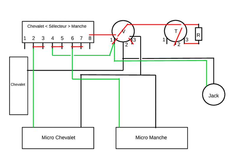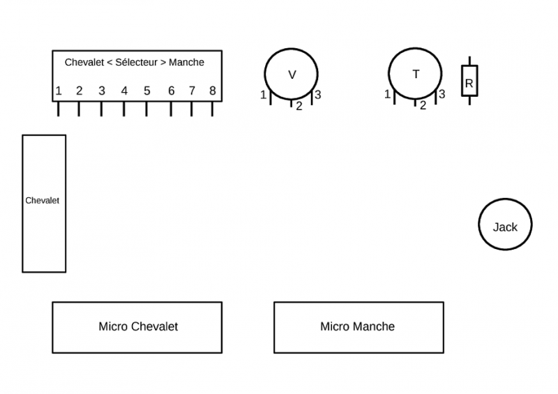 Pour le sélecteur de micros, la patte 1 est celle se trouvant vers la position chevalet.