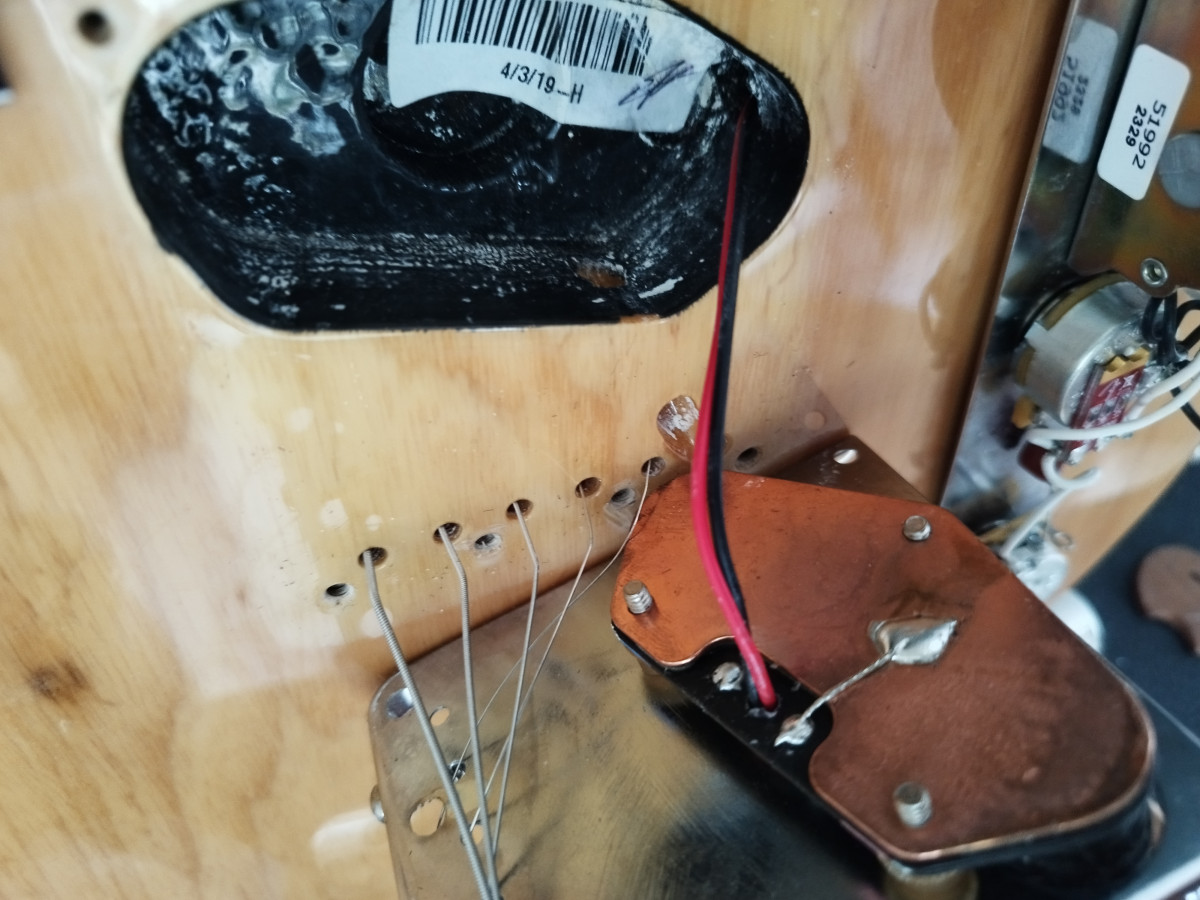 Pour le micro tu dois avoir un fil qui rejoint le cul d'un potentiomètre. Pour le chevalet ça dépend, tu peux avoir un fil aussi soudé sous le bloc, ou alors ça peut être fait via le contact entre le chevalet et le blindage de la cavité du micro (mise à la masse elle aussi).