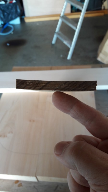 la face dessus, déjà slottée, ce n’est pas un soucis car je vais poncer pour avoir le radius souhaité mais la face dessous devrait être plane pour être collée sur le manche…