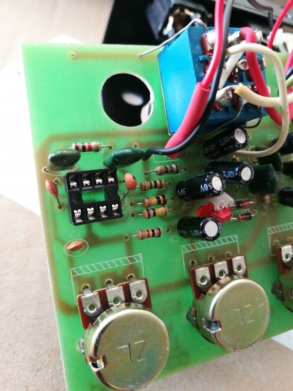 Pour changer l'ampli op à la demande, il faut déssouder celui d'origine et mettre un socket 8 broches à la place.