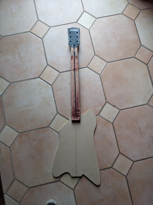 Pour cette année , je vais refaire une guitare que j'avais déjà eu l'occasion de travailler , mais en version "raccourcie" , et exploitable pour les concerts : la fameuse billybo version Bolin !
