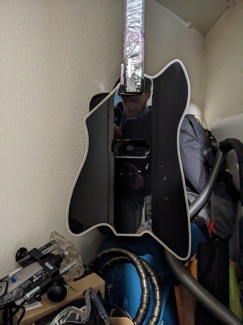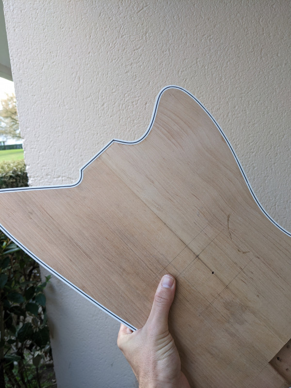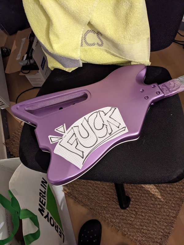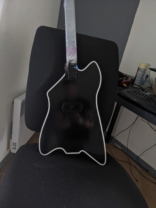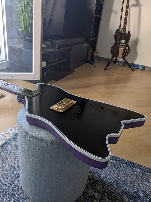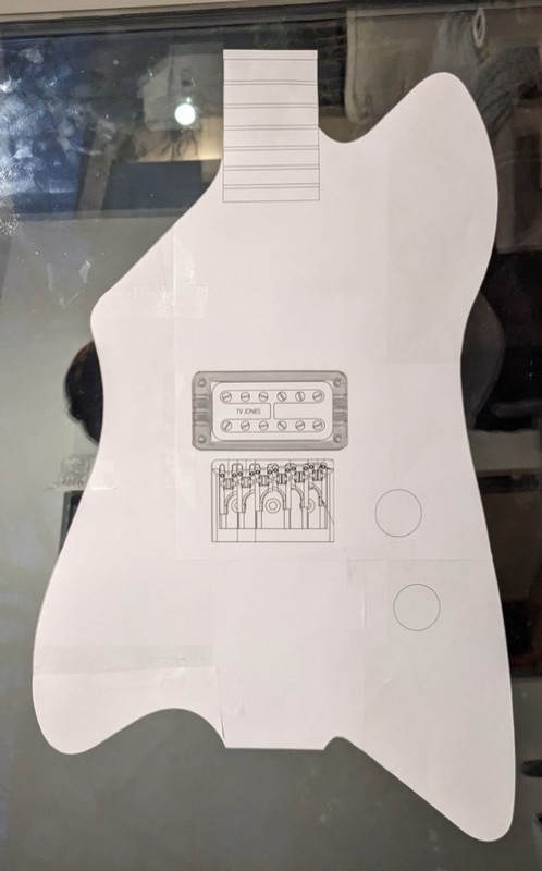 Pour rappel , le sujet doit encore exister sur le forum je pense, celle que j'avais fait était une reverse black en taille réelle, avec un manche tout fait (et les repères trapèzes typiques Gibson).