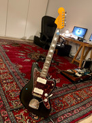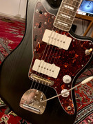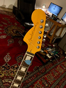 Il me reste à poser ce soir les attache-sangles et les 2 tendeurs sur la tête, puis à me lancer dans un réglage général qui va m'occuper un moment. Les cordes sont assez loin du manche, je me demande si je vais pas devoir trouver un shim. Le sillet est trop haut aussi, il faut que je le rabote à sa base. Dans tous les cas, je suis plutôt satisfait. Après ma petite Les Paul Junior replica, celle-là m'a donné nettement plus de fil à retordre, c'est un vrai bazar une Jazzmaster.