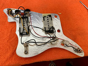 Je finalise l'électronique en soudant les micros (Q Pickups Hybrid). Je suis totalement ignare en électronique, donc j'essaie de suivre tant bien que mal les schémas que je trouve sur le net, en essayant de ne pas oublier les mises à la masse (à mon avis j'en ai même une en trop