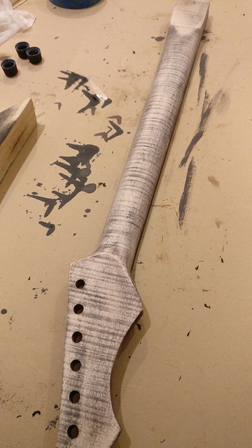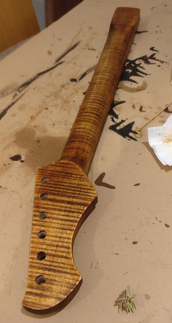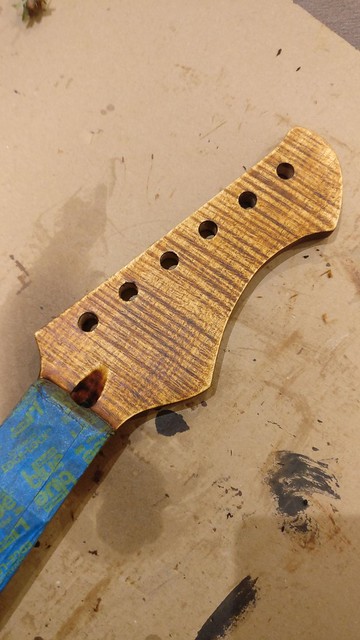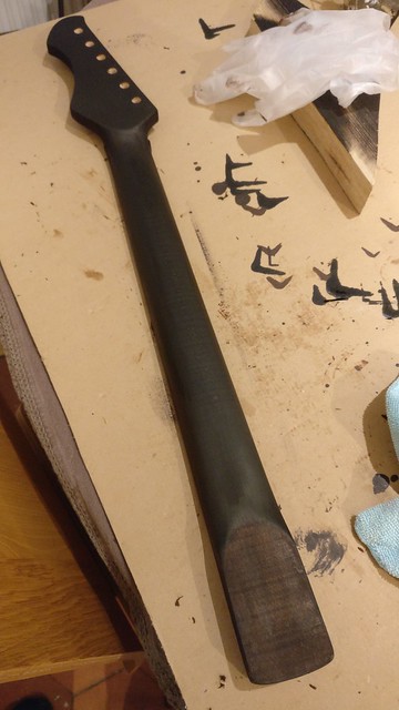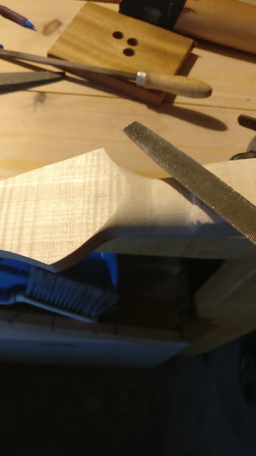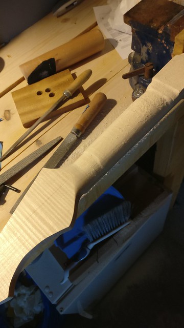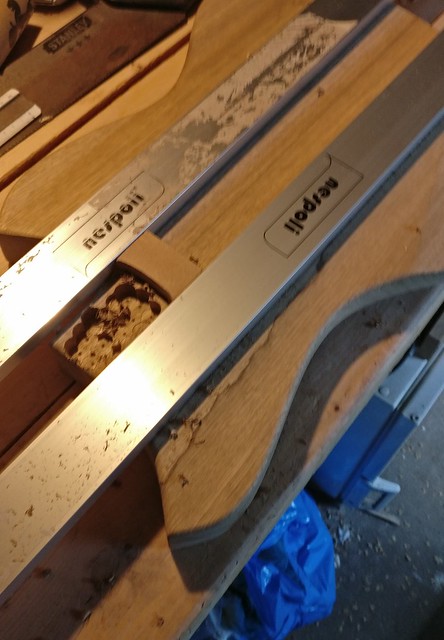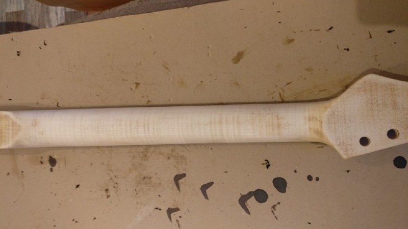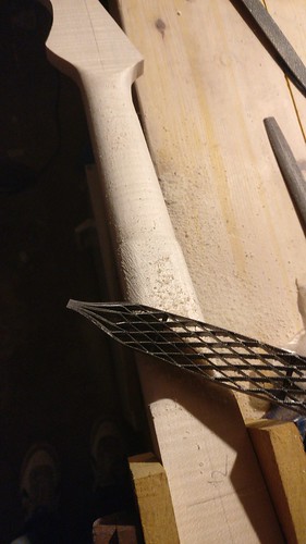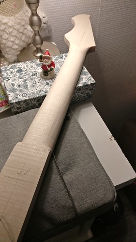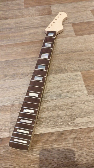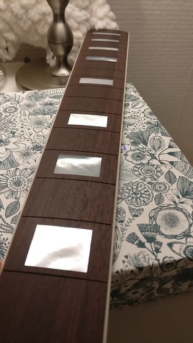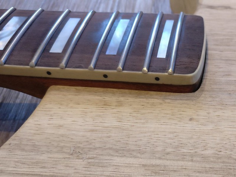 J'ai un peu avancé sur le manche depuis la semaine dernière, j'ai pu poser les frettes inox (un peu galère)
