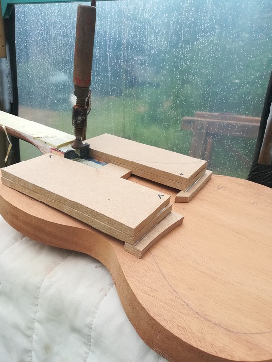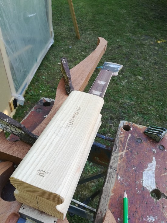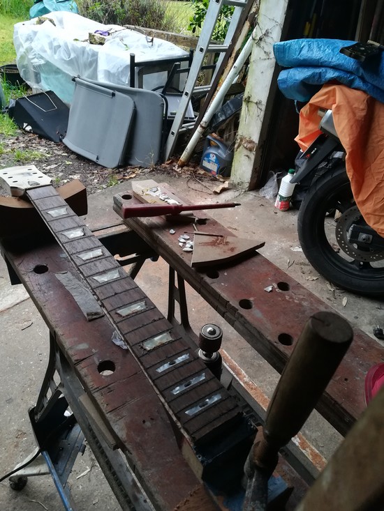 Autant vous dire que le résultat était catastrophique : la rainure n'était absolument pas droite, le PVC était trop large et j'en passe. La chance que j'ai eu, c'est que la touche de base était assez large.... Il y a donc moyen de rattraper tout ça et d'avoir un touche étroite comme je les aime. Par contre hors de question d'avoir un binding over the frettes désormais.