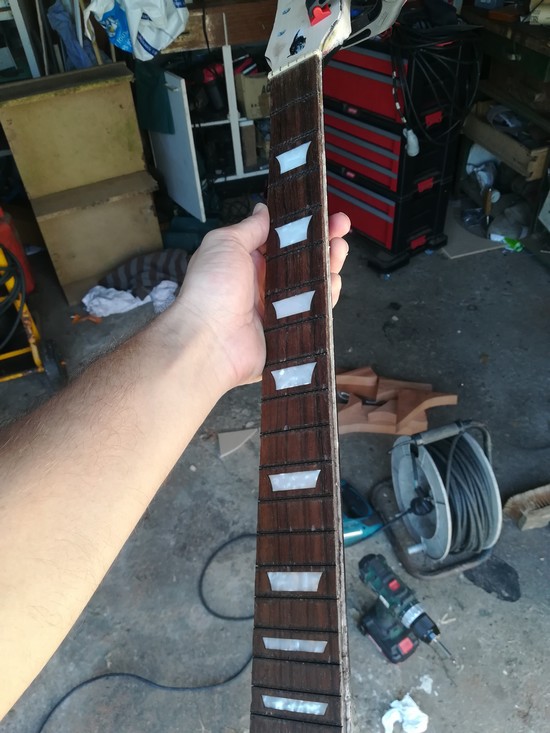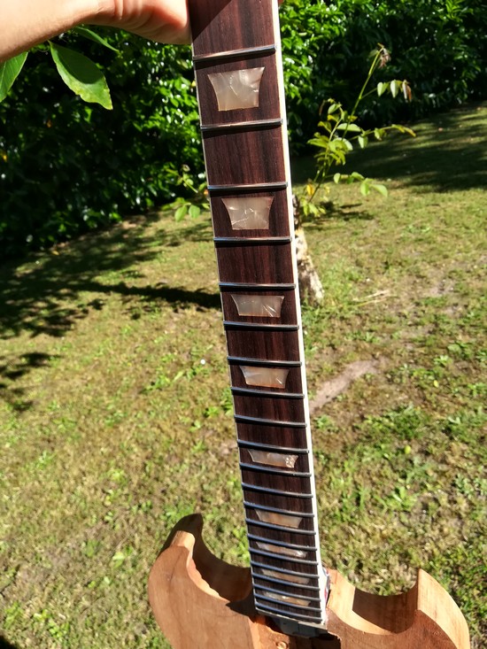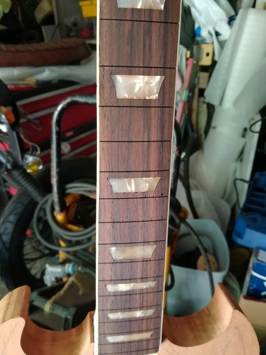 NB : Je suis fan des touches vieillies.... Et donc des inlays bien cracras, jaune/vert ( attention pas non plus ceux des les paul classic).