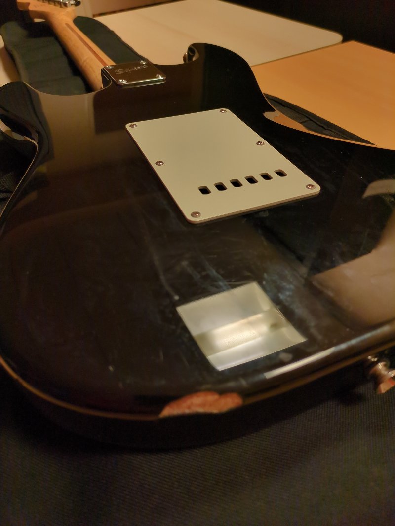 Puis j'ai aussi compris pourquoi le pickguard était légèrement gondolé ..