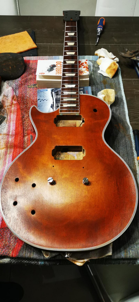 Je met du danish oil sur le sopalin et j applique sur la guitare