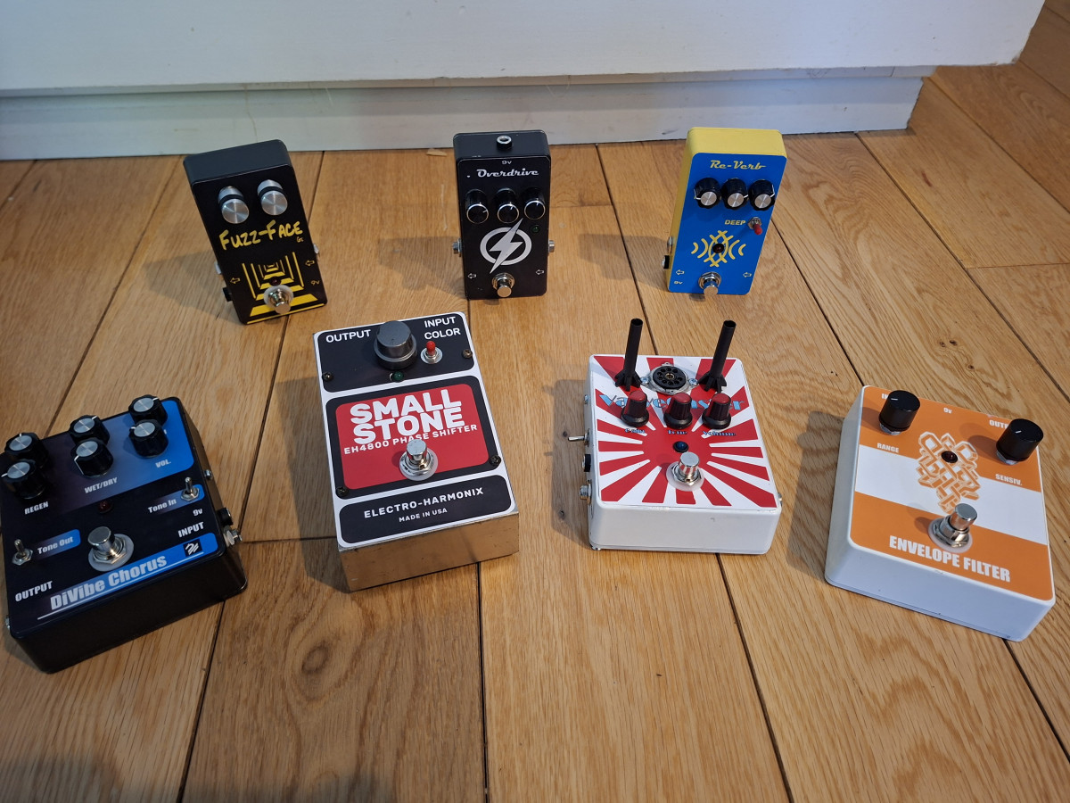 Après ça, fabrication du boitier quelques planches de récup, un bout de skaï,et pas mal de sciure, un logo en impression 3D (pour faire genre). Voila le nouveau jouet va rejoindre les pédales "maison" .Le plaisir du DIY .Lancez-vous. Que du fun..
