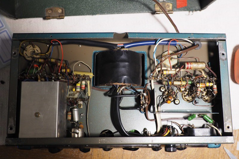 2 ECC81 ; 1 ECC83. 1 GZ34 en redresseuse, 2 EL84 en puissance.