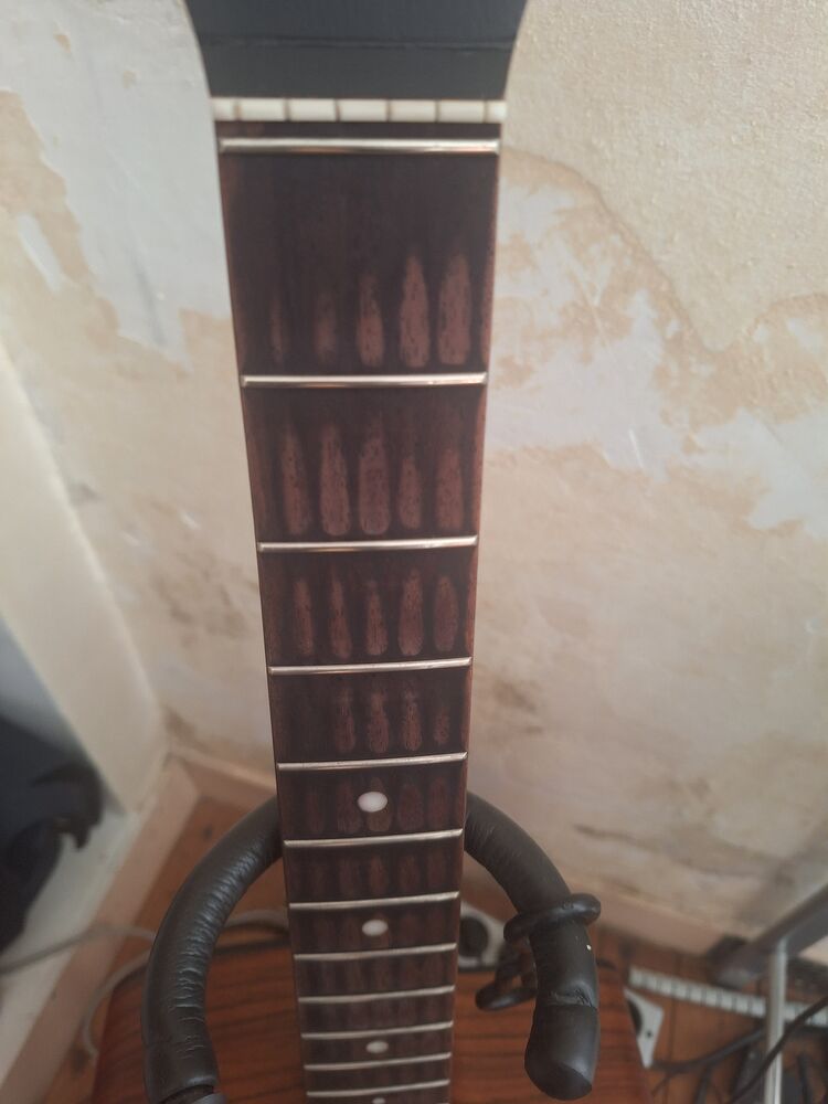 Merci pour votre intérêt, les frettes sont en bon état hormis les deux aux dessus de la fissure, je pense juste refretter ces deux là.