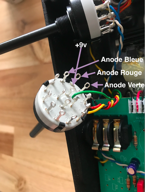 Donc voilà plus précisément où j'en suis. Mon problème résident dans le fait que je n'arrive pas à faire fonctionner le rouge et le vert ensemble pour faire du jaune, même sans le rotary. A savoir que j'utilise des petits câbles avec des pinces croco pour expérimenter.
